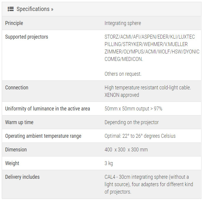 CAL4 는 내시경 카메라의 해상도, 색상, OECF, 동적 범위 및 노이즈를 측정하도록 설계되었습니다.
