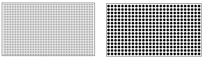 [TE260] Dot Chart 는 앞면과 뒷면에 두 개의 다른 차트로 구성됩니다. 차트 중 하나는 31 줄의 점들과 15 줄의 점들로 이루어져 있습니다. 왜곡 및 색수차를 결정하는 데 사용할 수 있습니다.