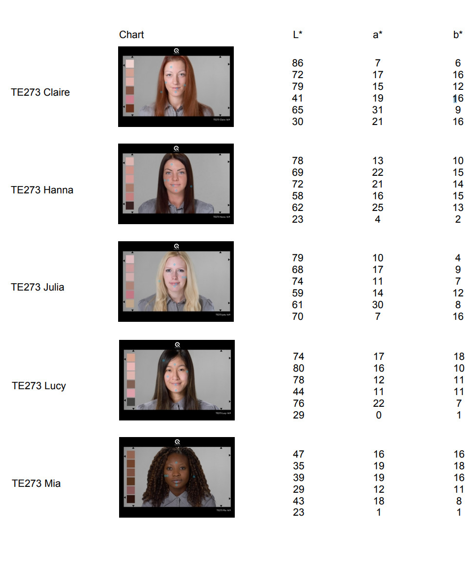 TE273 Natural Skin Tone 테스트 차트는 전자 카메라의 피부색 표현 능력을 평가하기 위해 설계되었습니다.