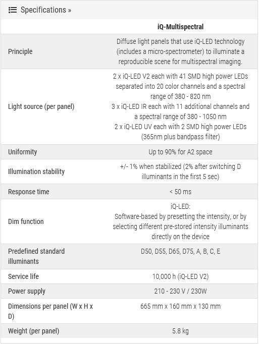 iQ-Multispectral은 iQ-LED 기술을 기반으로 한 멀티 스펙트럼 조명 장비로 문서, 텍스트, 이미지의 보존과 디지털화를 강화합니다.