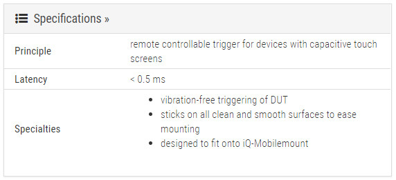 iQ-Trigger-T 는 아무런 압력없이 정전 용량 방식 터치 스크린에서 손끝의 터치 동작을 대신합니다.