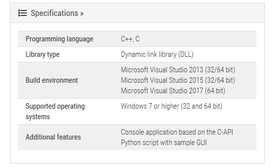C 인터페이스는 Python, Matlab 또는 Labview와 같은 다양한 프로그래밍 언어 및 SDK에서 사용할 수 있습니다.