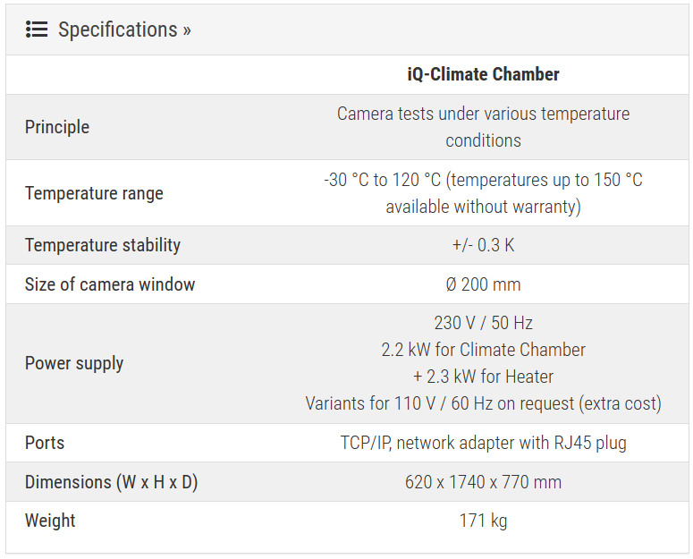 iQ-Climate Chamber는 카메라 성능 테스트를 위한 다양한 온도 시나리오를 생성합니다.